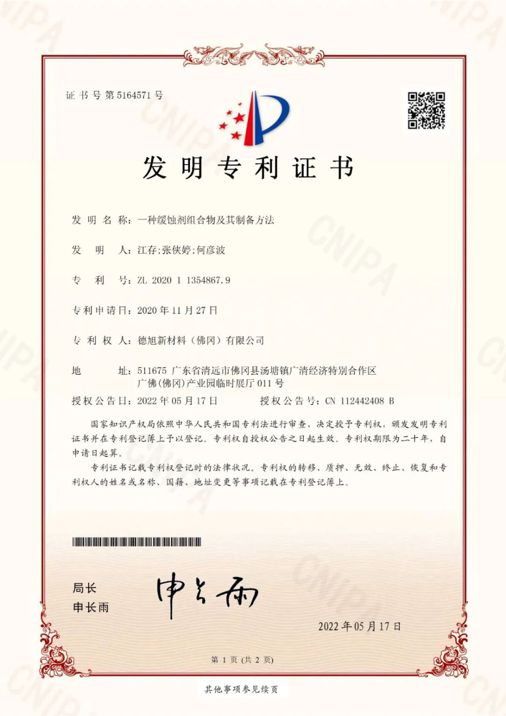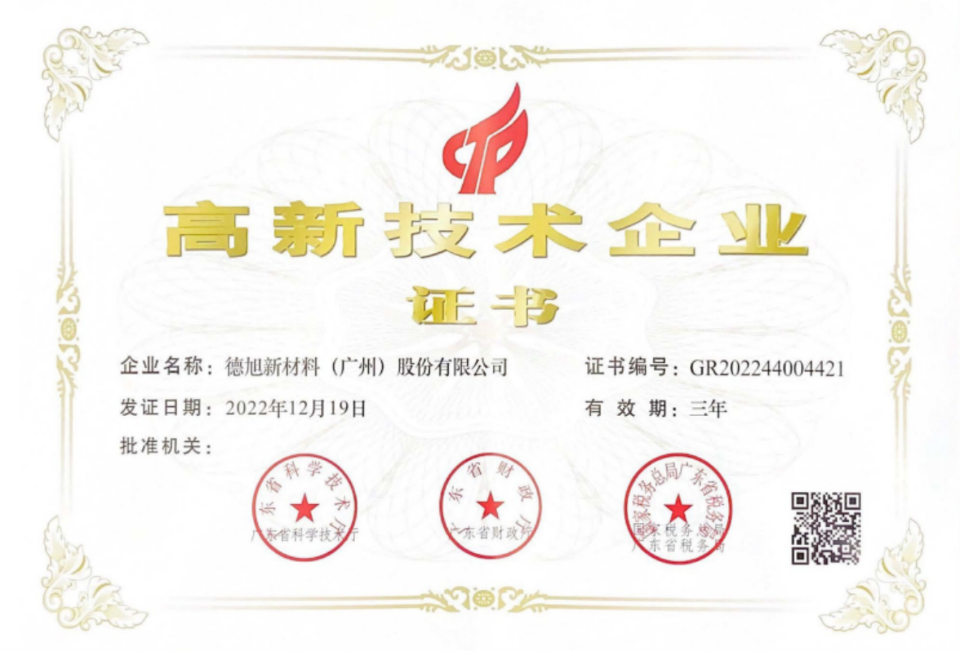 德旭新材料(廣州)股份有限公司成立于2012年,坐落于國內(nèi)新材料領(lǐng)域創(chuàng)新集聚區(qū)的廣州高新技術(shù)產(chǎn)業(yè)開發(fā)區(qū)核心位置——廣州科學城,是一家集研發(fā)、生產(chǎn)、銷售于一體且擁有自主知識產(chǎn)權(quán)的專精特新企業(yè)。長期專注于金屬材料的防腐蝕研究與創(chuàng)新,為汽車與船舶、航空航天、半導(dǎo)體及3C電子、新能源、水性防腐涂料等領(lǐng)域的金屬防腐蝕提供產(chǎn)品和解決方案。同時也服務(wù)于工業(yè)潤滑、金屬表面處理、工業(yè)、商用和民用重油污清洗和益智玩具等行業(yè)。公司產(chǎn)品獲得BASF(巴斯夫)、HP(惠普)、漢高、美泰、MOOSE、中國船舶、中國機械總院、安集、匯川、三環(huán)、晨光等國內(nèi)外知名企業(yè)的青睞。
